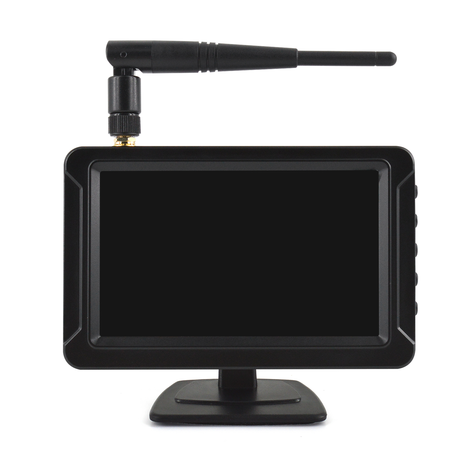 PLUS it comes with a Wireless* 5" (inch) monitor/Screen so you don't have to run a phono cable from the camera to link to the monitor. The monitor also comes with two mounts; one to attach it to the dashboard and the other is a suction cup.